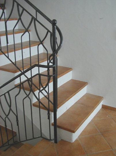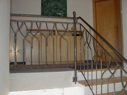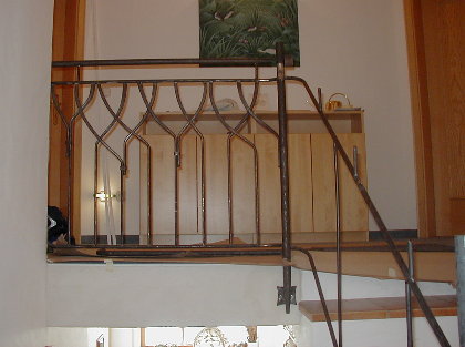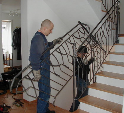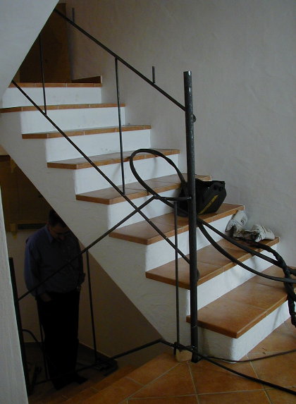 Das weitgehend fertige Keller-Teilstück mit bereits aufgeschweißtem Handlauf, dessen Ende jedoch noch nicht "harmonisch" zurechtgeschmiedet ist. |